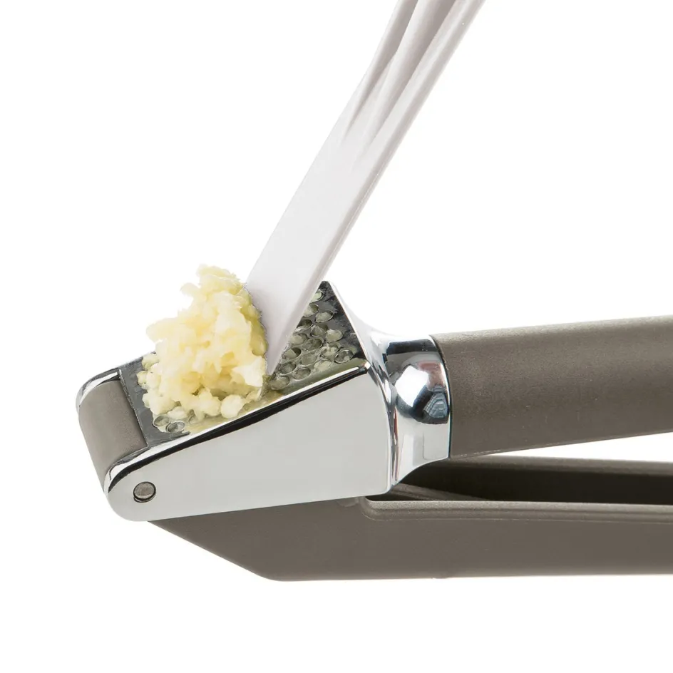 Hachez de l’ail frais en un tour de main avec le presse-ail RICARDO. Conçu pour presser plusieurs gousses épluchées ou non à la fois, ce presse-ail est un ustensile indispensable pour toute cuisine. Il comprend un accessoire pratique qui s’enclenche au manche pour vous aider à couper facilement l’ail haché et à enlever l’excédent d’ail dans le panier.