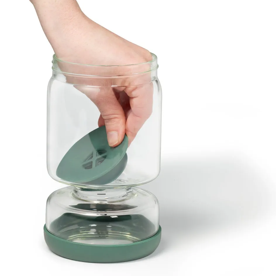 Ce contenant en verre borosilicate durable est parfait pour conserver vos aliments marinés, comme les cornichons, olives et bien plus. Grâce à son design à double compartiment et à son filtre intégré, il sépare facilement les aliments du liquide. Avec sa capacité de 600 ml (20 oz), ce contenant est parfait pour garder vos marinades délicieuses et fraîches.