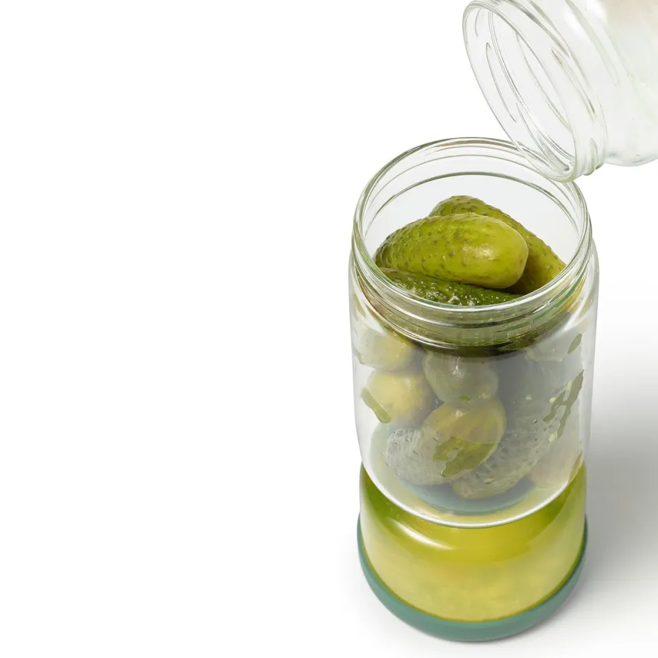 Ce contenant à marinade RICARDO de 900 ml est idéal pour conserver vos aliments marinés préférés, tels que cornichons, olives, betteraves et œufs. Fabriqué en verre borosilicate durable, il présente une conception à double compartiment avec filtre intégré pour séparer les aliments du liquide, garantissant une fraîcheur optimale. Sa grande capacité de 900 ml (30 oz) en fait un choix idéal pour le réfrigérateur.
