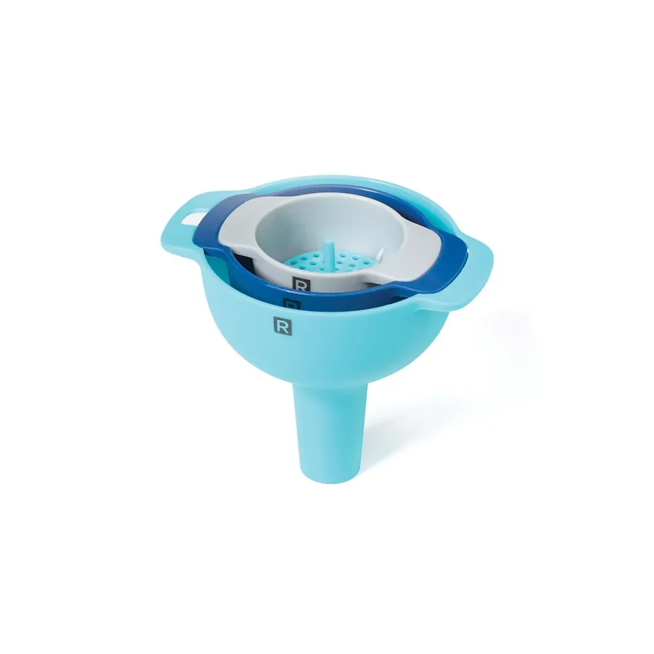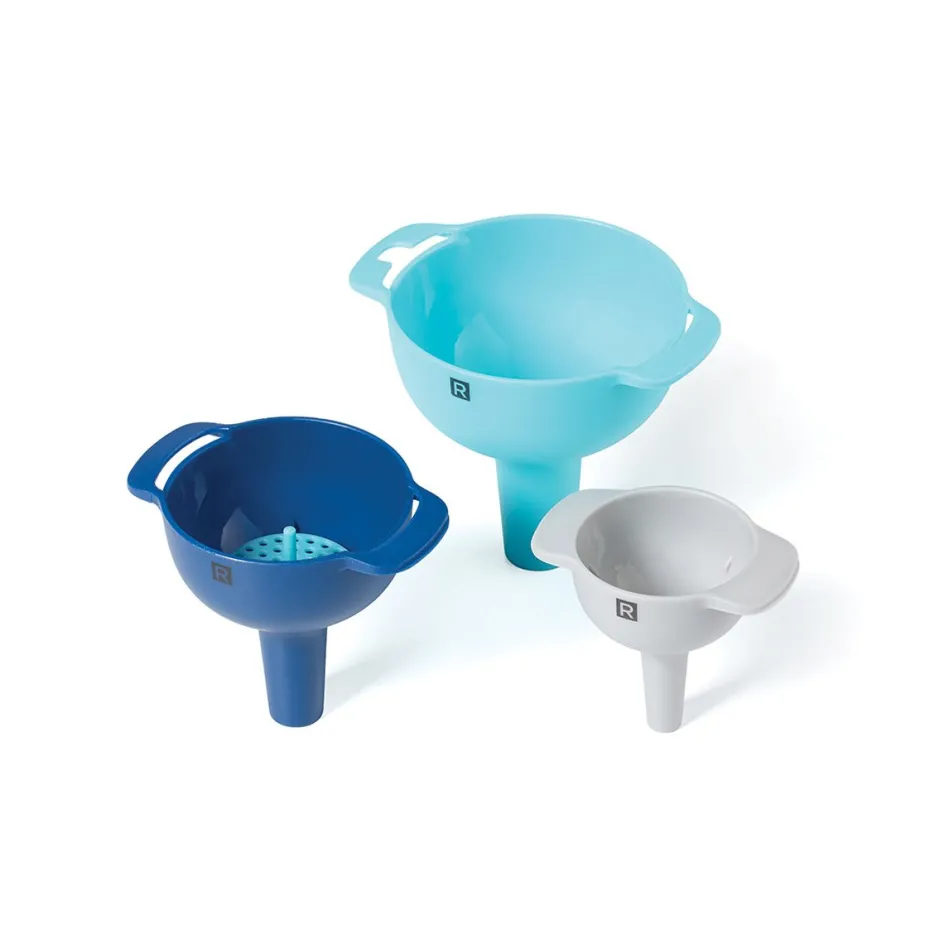 Avec cet ensemble de trois entonnoirs, vous ne vous tromperez pas. Quels que soient vos besoins, la passoire amovible convient aux trois formats. Économisez sur l’espace de rangement, en les emboîtant !
