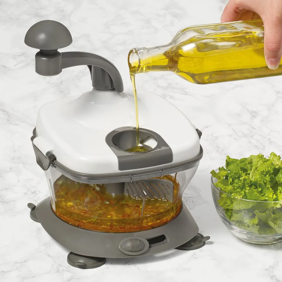 Gagnez du temps lors de la préparation de vos repas et soyez créatif avec ce hachoir élégant et novateur. Ce hachoir compact et léger est facile à ranger et conçu pour un usage quotidien. Facile à utiliser et nécessitant peu d’entretien, ce hachoir pratique est parfait pour préparer des trempettes, des vinaigrettes, des sauces et bien plus.