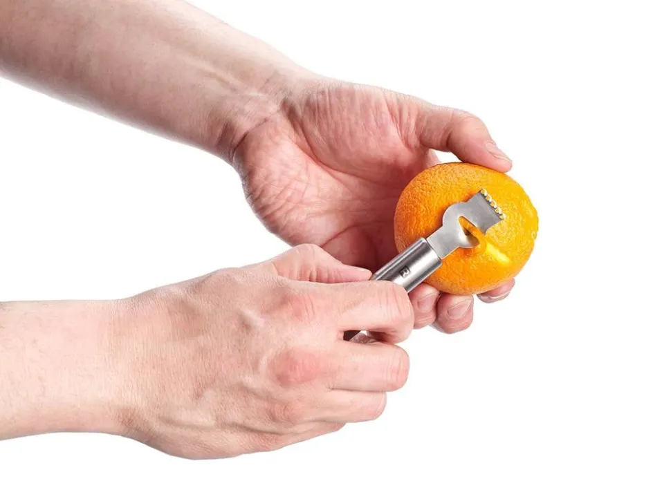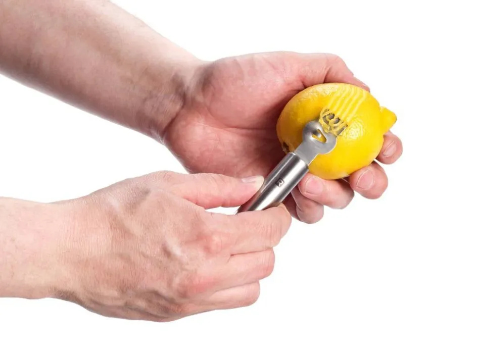 - Zesteur à agrumes avec 2 lames : petite lame pour créer des zestes fins et grosse lame pour découper de longs zestes