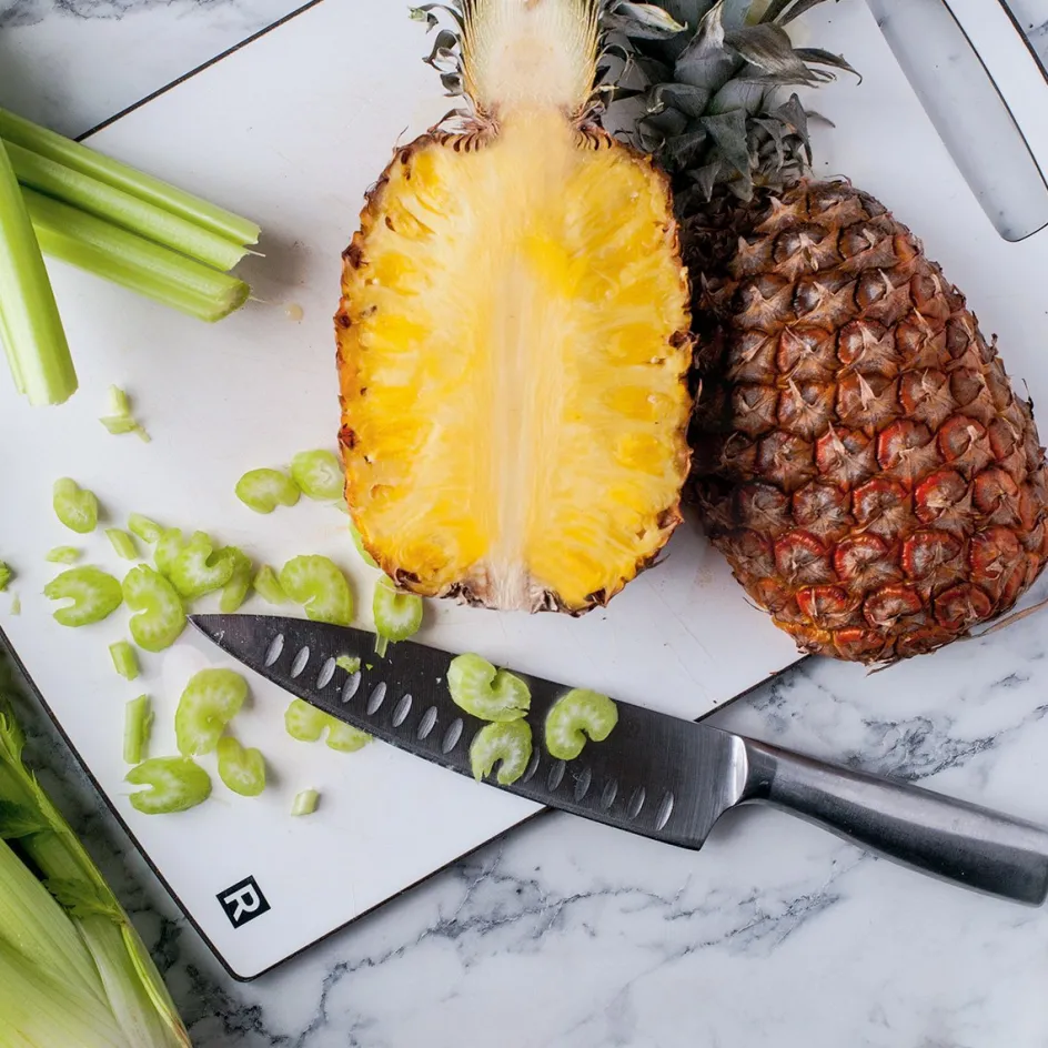 Le design de ce couteau de chef RICARDO a été conçu par l’équipe cuisine de Ricardo. Son poids et son manche ergonomique sont parfaitement balancés. Sa lame tranchante à encoches biseautées permet aux viandes de ne pas y coller et assure une coupe parfaite.