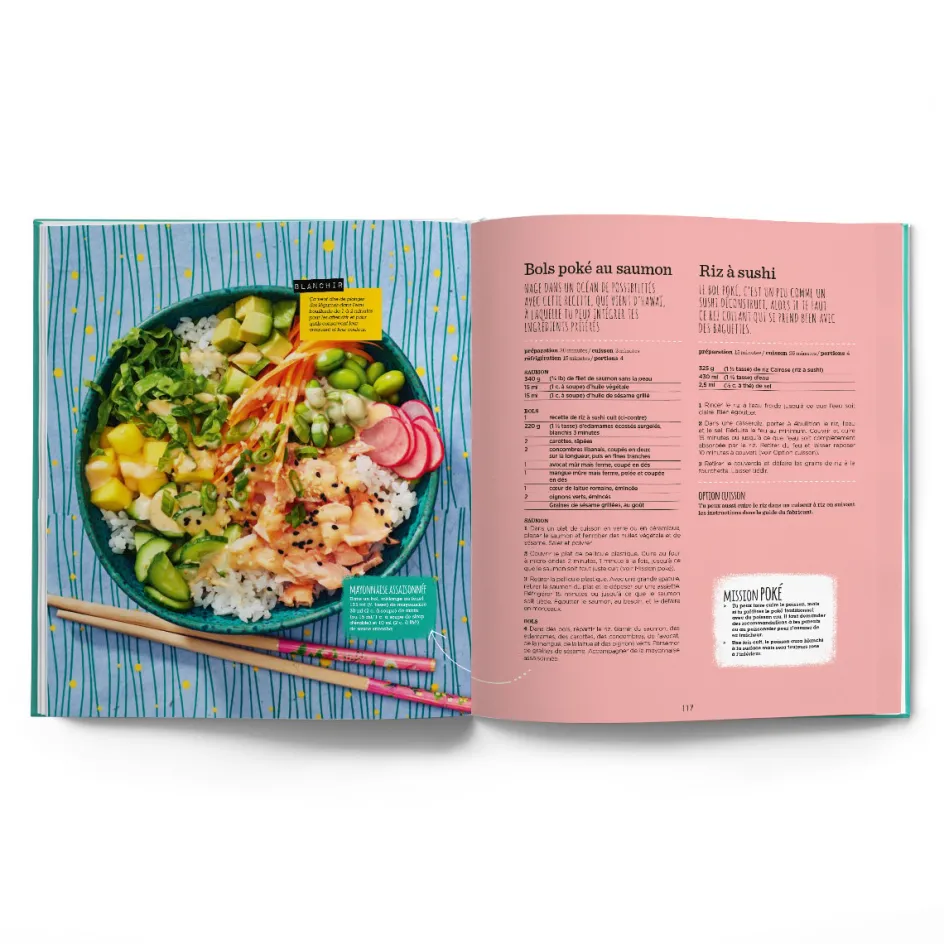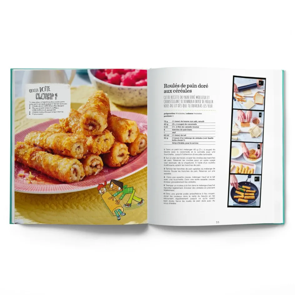 Ce livre, c’est beaucoup plus que des recettes pour les jeunes et les moins jeunes. On y trouve des trucs pour devenir un cuisinier ou une cuisinière qui se débrouille bien, mais qui sait aussi comment choisir ses aliments à l’épicerie et qui a toujours une pensée pour l’environnement. Dans ce deuxième tome, on propose des nouveaux plats trop bons à essayer avec les amis et la famille. En cuisine, il ne faut pas trop se prendre au sérieux, juste être curieux…
