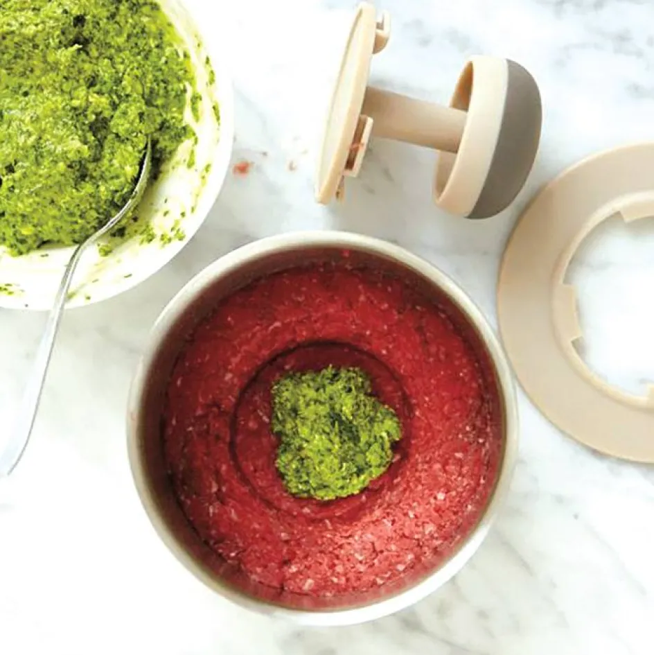 Ce presse-burger RICARDO permet non seulement de former des galettes de burger parfaitement rondes, mais peut aussi être utilisé pour mouler les tartares. C’est l’outil à avoir pour les barbecues d’été !