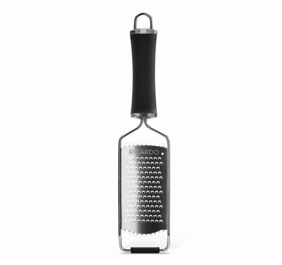Cette râpe large à moyenne surface en acier inoxydable RICARDO est parfaite pour râper les fromages, le chocolat ou les légumes. Son manche et sa bande antidérapante permettent une prise confortable et sécuritaire.